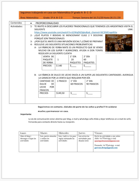 5TO GRADO- SEMANA DEL 16 AL 20/11